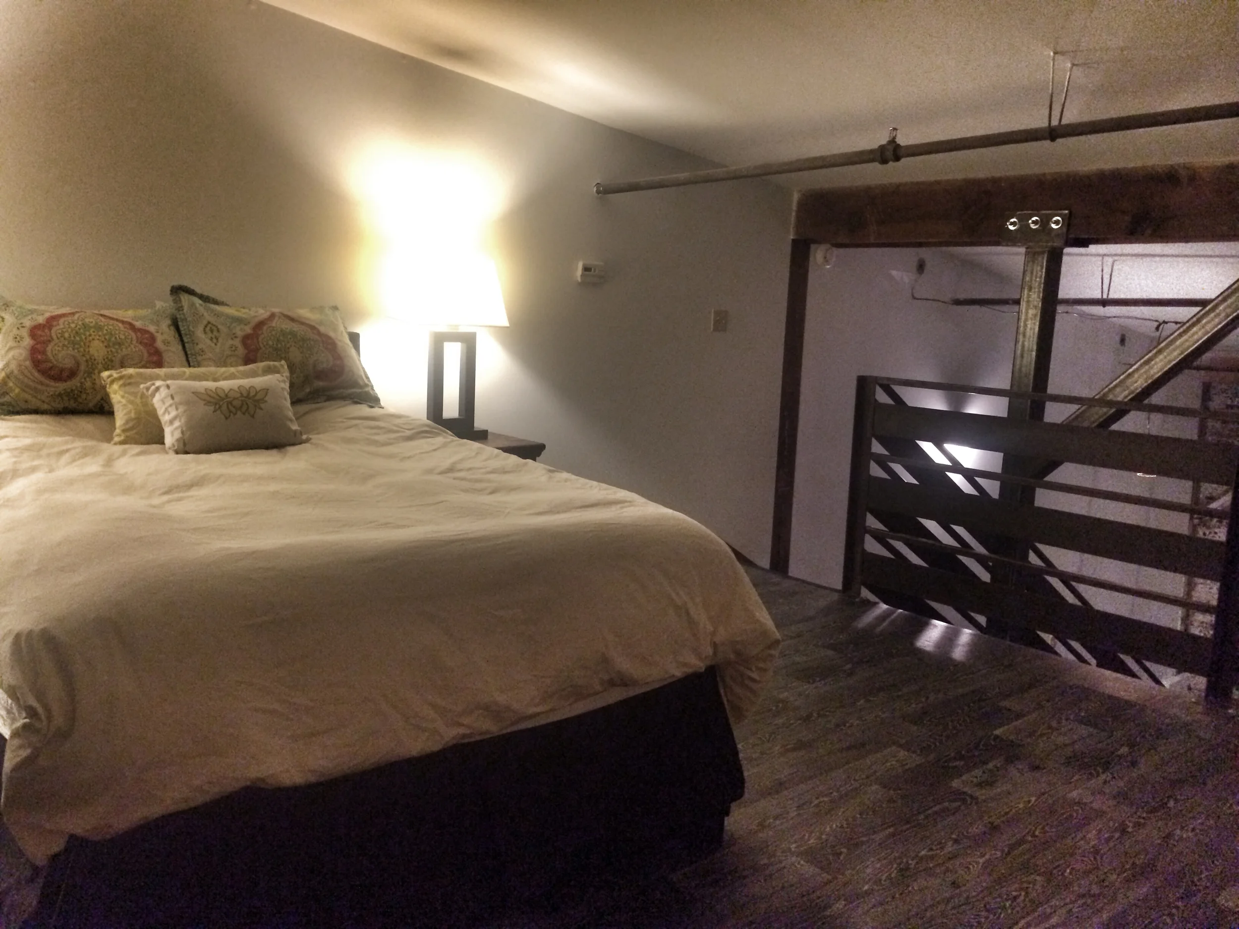 Our units are 1,000 square feet with steel & reclaimed wood decor, concrete stained floors, full bathtub/shower, kitchen with bar, concrete countertops & lofted bedroom.